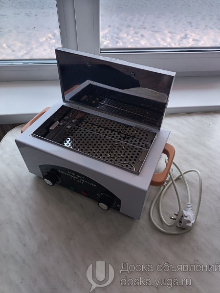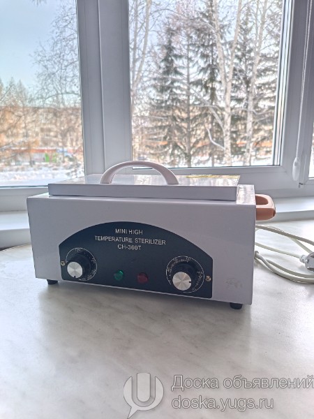 Сухожаровой шкаф, который используется для термической стерилизации маникюрных, педикюрных, косметологических и других инструментов горячим сухим воздухом. Назначение: Предназначен для стерилизации инструментов из металла и стекла. Температурный диапазон: Регулируемая температура от 0 до 220°C. Таймер: Встроенный таймер с диапазоном работы от 0 до 60 минут. Материал: Внутренний блок изготовлен из нержавеющей стали. Применение: Рассчитан на стерилизацию примерно трех комплектов инструментов. Новый. Пользовались пару раз.